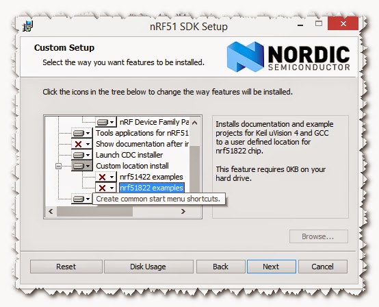 - Install nrf51_sdk_v6_1_0_b2ec2e6.msi from here.