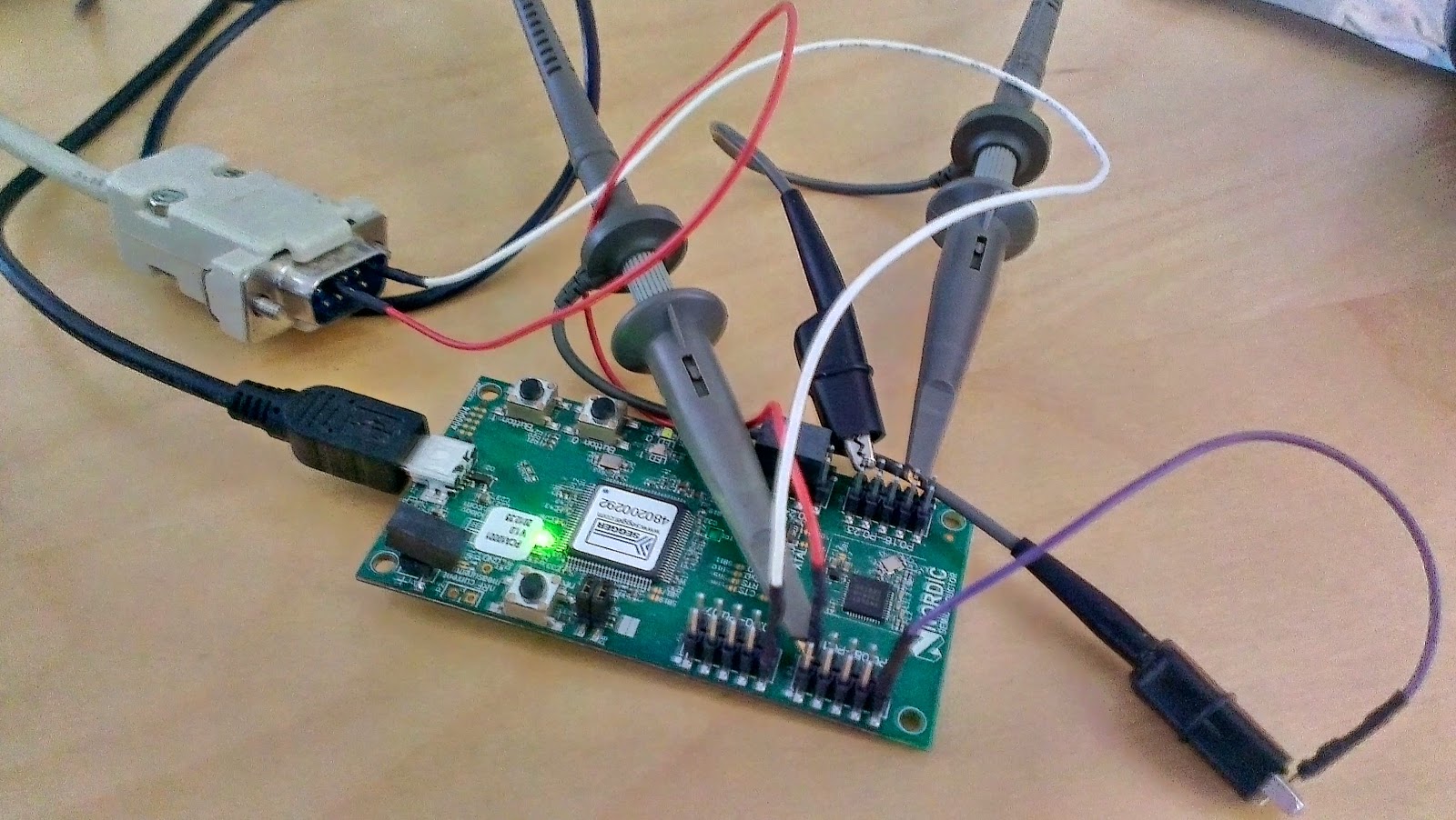 I started to persuade the ARM chip to emit characters out its UART. I connected the output of the ARM UART to the UART on my PC and after some fiddling around… didn’t get a thing.