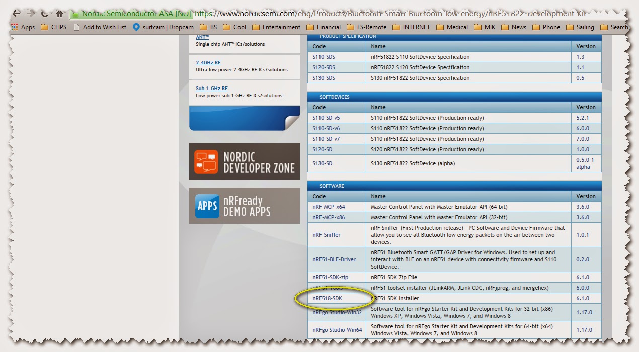 Then you have to get permission to download the Softdevice itself. This requires credentials. There are multiple softdevices. S110 seems to be a stack for the “Peripheral” role, while s120 is the stack for the “central” role. You can’t both initiate connections, and accept them from others!