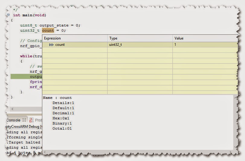 | A breakpoint has been hit, and the variable ‘count’ is selected for display |