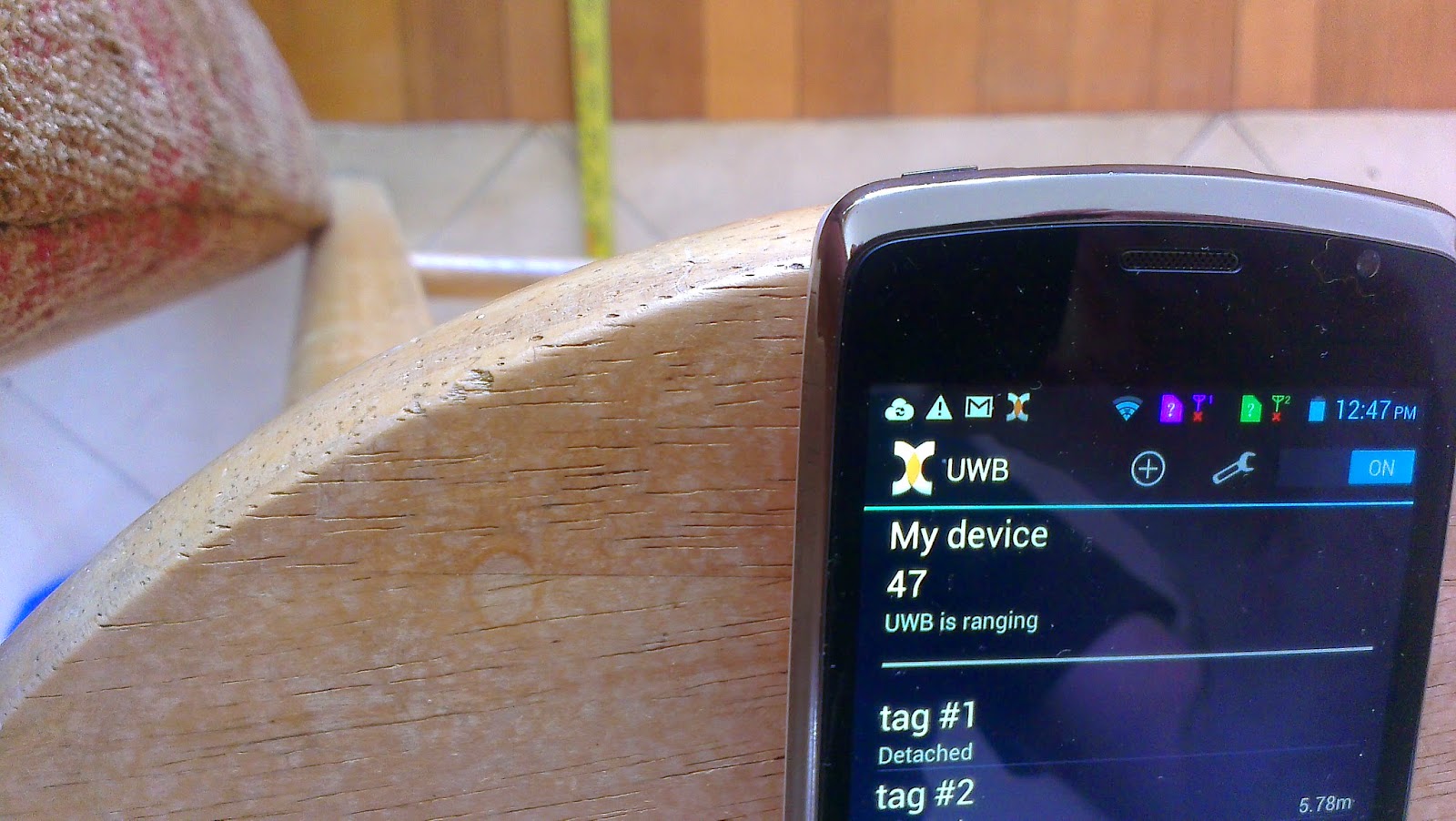 I set the phone on the wooden stool and moved it back to be exactly over the meter mark on the steel ruler. I used the UWB-logger program to capture the data. Because the UWB program doesn’t provide any feedback, I monitored ranges on the main system UWB panel.