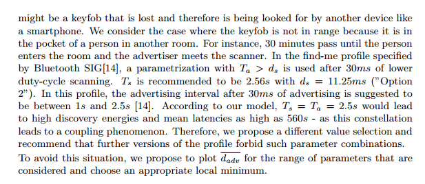 I read (no, I ‘scanned’ har, har) “Precise Energy Modeling for the Bluetooth LowEnergy Protocol” and set up advertising and scanning parameters based on it’s teachings.