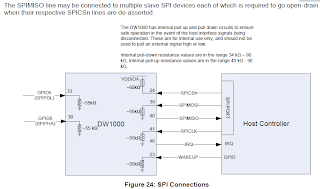 I thought the DW1000  I/O supply could be run at 1.8V, but it can’t. It’s 2.8V – 3.6V. There are separate 1.8V-optional supply pins for digital and analog circuits (to save power) but they can run at 3.3V. So for the time being, since the nRF51822 can run at 3.3V, the whole board will be 3.3V so all the I/O’s will be 3.3V. Later we will have to determine if running the nRF51822 at 1.8V for power saving is needed, then level shifting the signals connected to the DWM1000.