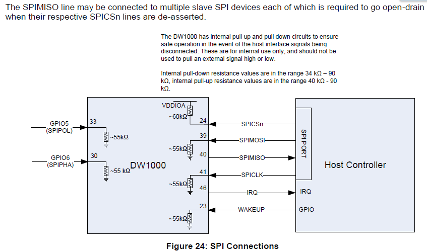 I thought the DW1000  I/O supply could be run at 1.8V, but it can’t. It’s 2.8V – 3.6V. There are separate 1.8V-optional supply pins for digital and analog circuits (to save power) but they can run at 3.3V. So for the time being, since the nRF51822 can run at 3.3V, the whole board will be 3.3V so all the I/O’s will be 3.3V. Later we will have to determine if running the nRF51822 at 1.8V for power saving is needed, then level shifting the signals connected to the DWM1000.